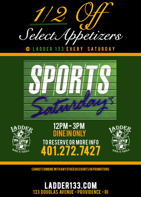 Tags: 1/2 off, appetizers, college football, ladder 133, ladder133, rhode island, ri